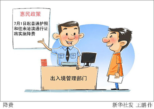 从7月1日起,将因私普通护照收费标准由160元/本降为120元/本,往来港澳通行证收费标准由80元/张降为60元/张,7月1日前已受理的证件仍按原标准执行。