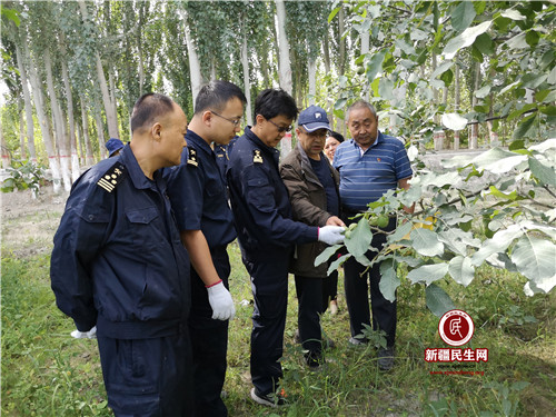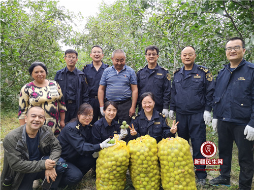 9月4日一大早,兰干村4组村民吐尔洪·阿巴斯的核桃园里来了一支志愿服务队,这就是乌鲁木齐海关下沉兰干村的9名结亲干部和3名驻村工作队员。