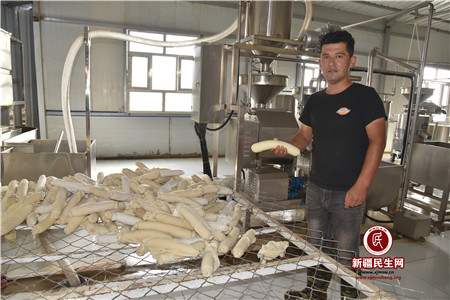 随着市场的发展,作坊的产量已然不能满足大家的“胃口”2019年,新疆税务局“访惠聚”工作队为打赢脱贫攻坚战加油添力,工作队从局里争取了20多万元的项目资金,帮助哈里斯豆腐厂从内地购买了一些先进的经济实用设备,形成自动化流水线生产模式,从之前的每天1-2吨到现在的7-8吨,大大提高了生产效能。